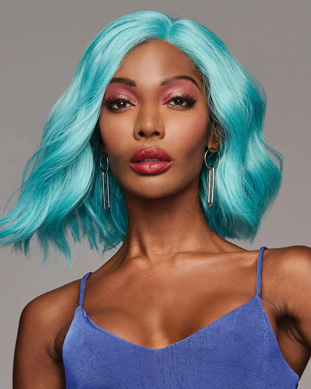 His sweetheart of an angled bob in a tart blue raspberry shade is more than just eye candy with its monofilament part and lace front hairline. It’s a sugary treat of a dream ‘do that you can make your own. Heat style the Tru2Life synthetic hair for a look that’s sleek and straight.