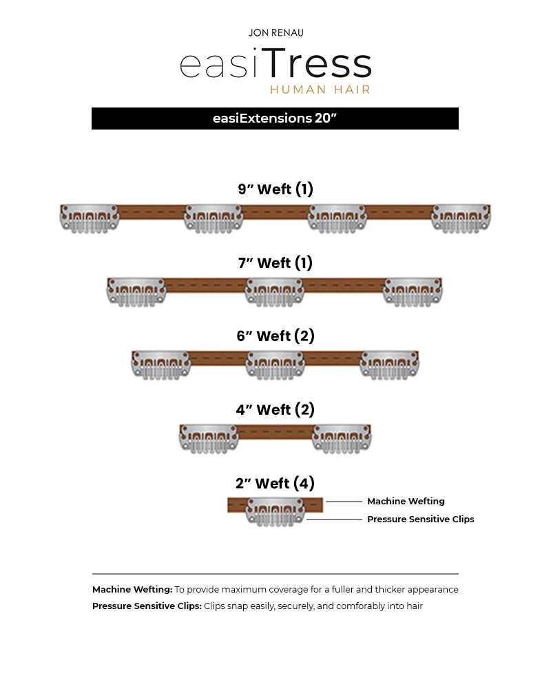 4pc: 2″ wefts | 2pc: 4″ wefts | 2pc: 6″ wefts | 1pc: 7″ weft | 1pc: 9″ weft - Weight: 5.1 oz.