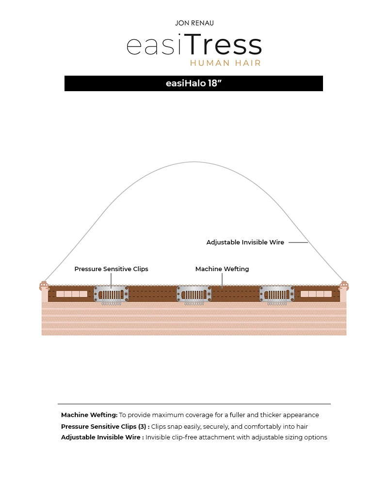 More hair please! easiHalo 18″ is the perfect human hair extension for an immediate boost in hair volume and amazing length. Discreet, secure, and comfortable for those with a sensitive scalp, this halo hair extension incorporates an adjustable invisible wire for a secure fit with or without clips. Handmade with gradual layers of premium 100% Chinese Human Hair that seamlessly integrates with your biological hair, no one will notice that this undetectable blend isn’t all your natural growing hair.