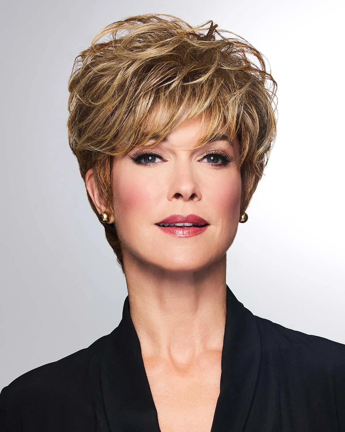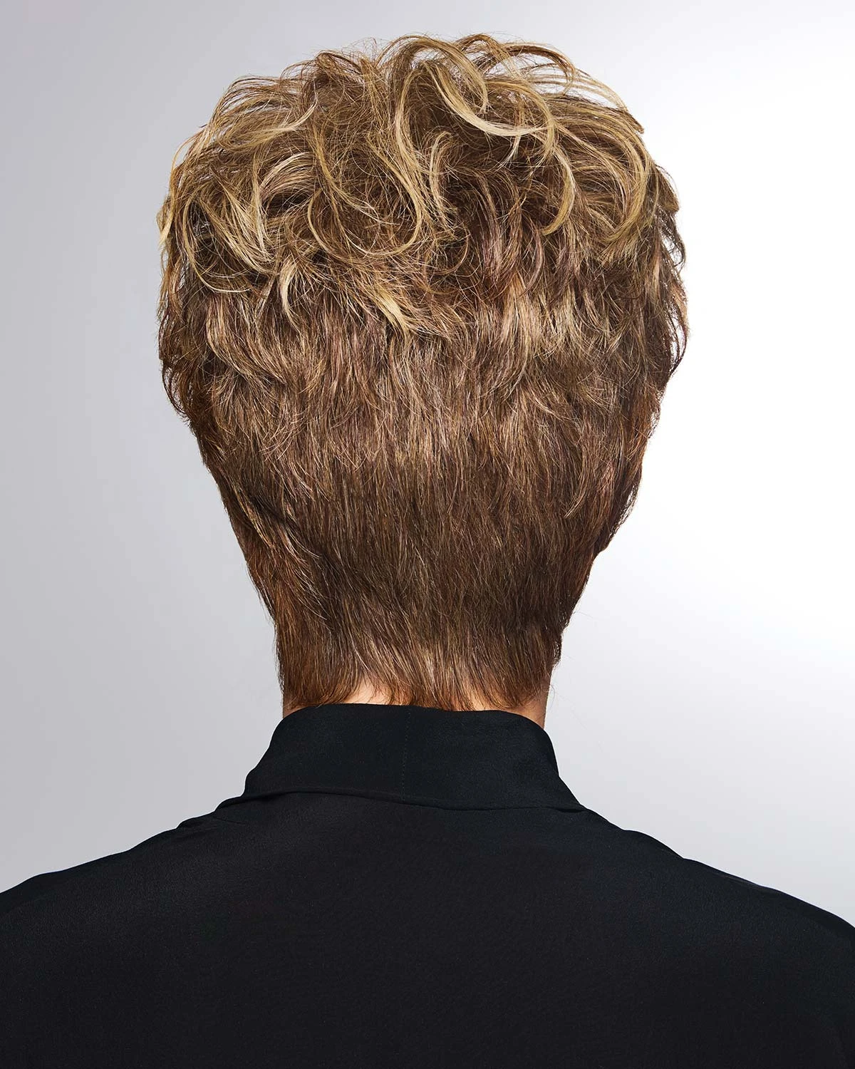 This contemporary tapered short cut features sides and nape that sit close to the head, and longer layers on top for lots of playful volumes. A sophisticated gentle wave throughout gives the overall style of modern texture and movement.