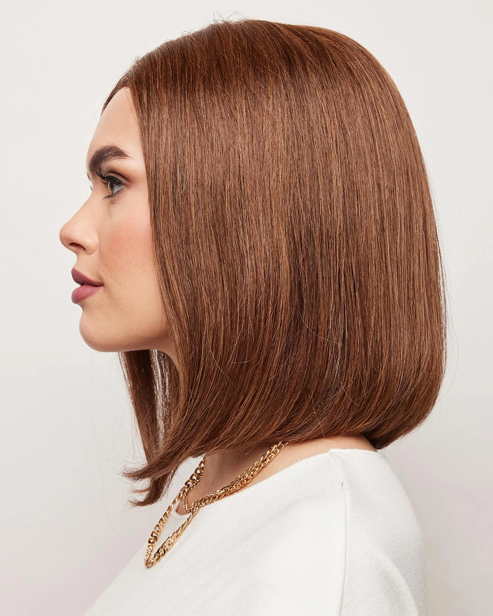 Harriet from our Alexander Couture Collection is a medium-length human hair wig. This straight ready-to-wear wig is a mid-length bob. Harriet is perfect for those who want a chic and modern look. With its medium-length bob style, this wig is both stylish and versatile. Crafted from high-quality human hair, it offers a natural look and will leave you feeling confident and beautiful. Harriet is lace front and lace part. Its lace front will give you a natural look with the lace part cap. Harriet’s cap construction has adjustable tabs in the back nape area to allow a more comfortable fit. The result is a relaxed fit with a natural look that is fashionable and easy to wear.