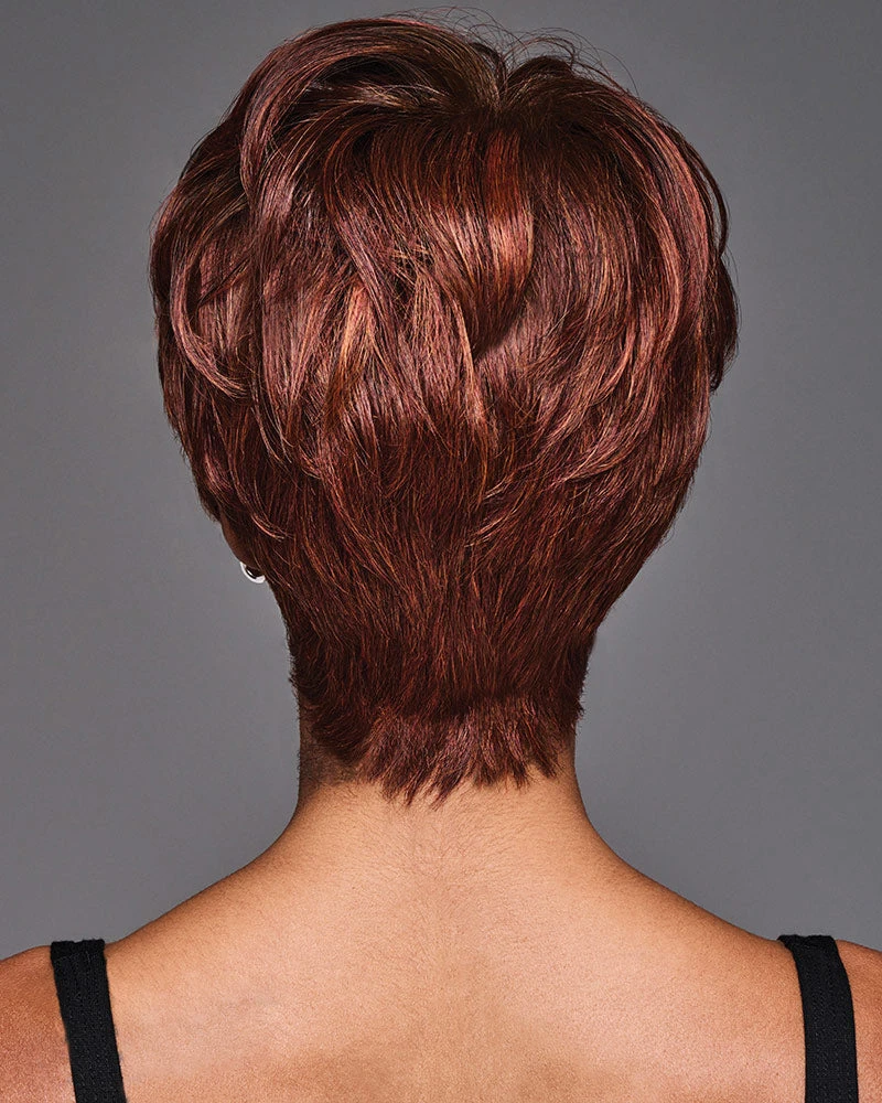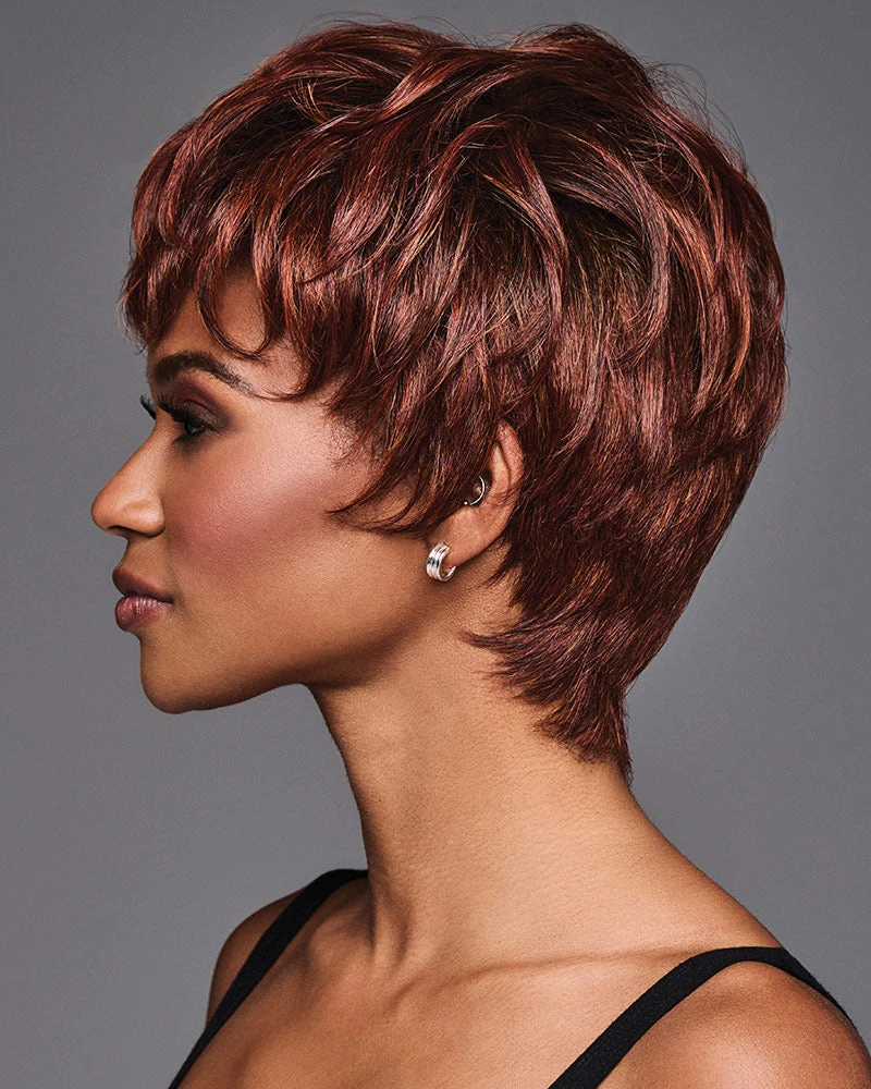 Lights, camera, action! JADA brings all the seductive style of a brazen Bond girl to this sexy boycut. She’s a short, wavy crop with a longer front and a monofilament top for sweeping movement that can be brushed forward or with a sophisticated side part.