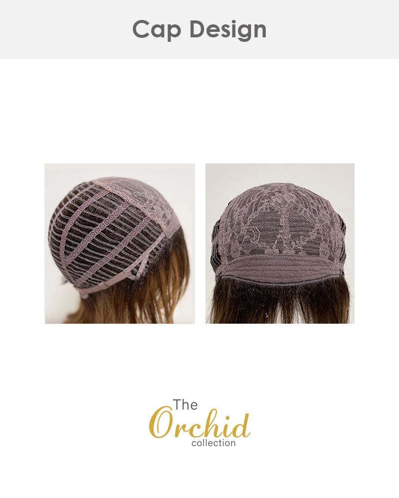 Jan from The Orchid Collection is a medium-length synthetic wig. This wavy ready-to-wear wig is a fashionable and flattering choice. This beautifully cut style is versatile and looks great on individuals of any age group. Its textured layers add dimension and movement to your look, creating a trendy and dynamic hairstyle. Whether you’re looking for a casual everyday style or a chic look for a special occasion, Jan is one to watch. Jan is machine made with adjustable tabs in the back-nape area to allow a move comfortable fit. The result is a comfortable fir with a natural look that is both fun and stylish.
