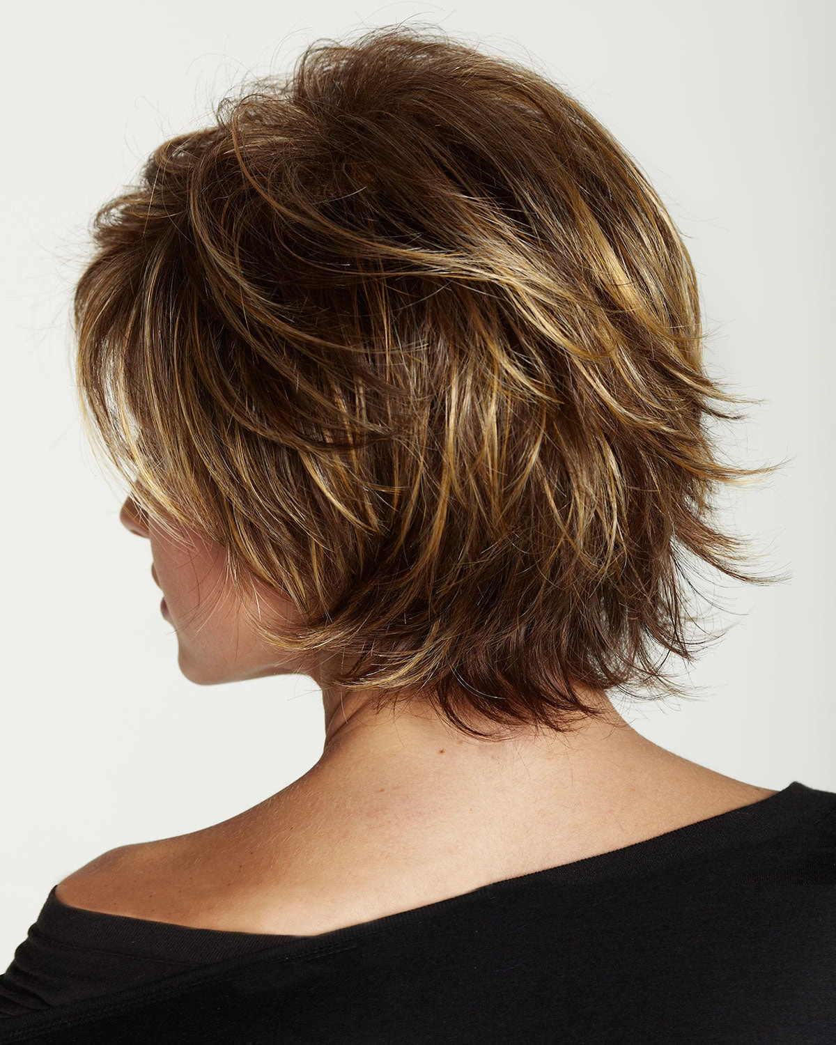 Natural wind blown flip style. Natural look with more volume. The full volume provided by the Jessica is glamorous, yet subtle, which is why is makes a great wig choice to wear during any season of the year. Front and sides are hand-tied, Super soft velvet front provides comfort but also gives a soft feel without irritation. All Special fiber Kanekalon and thin wefting provides a lightweight feel.