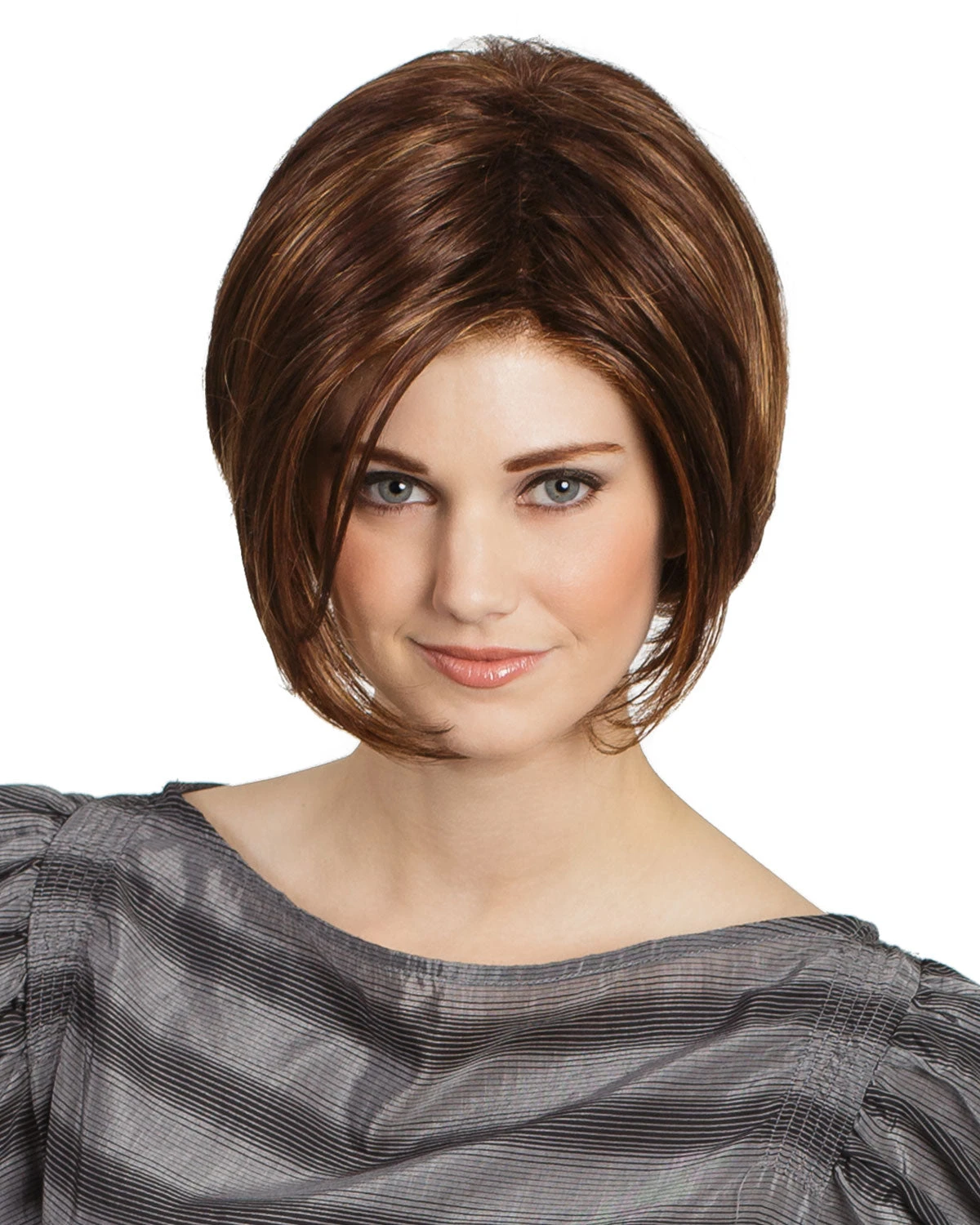 Logan has stacked layers in the back that blend into beautifully longer layers up front with Sides swept bangs that can do so much! This smooth, easy style is an everyday easy wear.