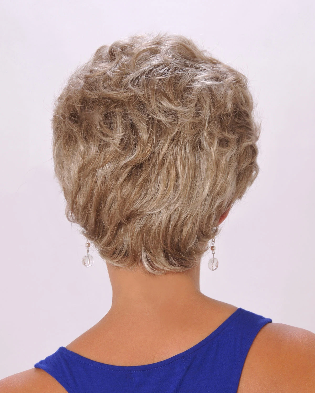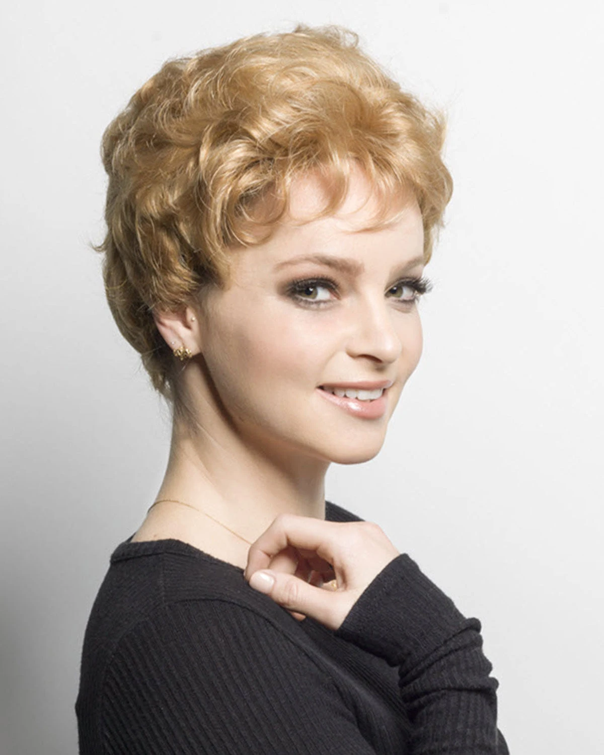 Soft, rolling curls imitate a natural body wave in a short classy style.