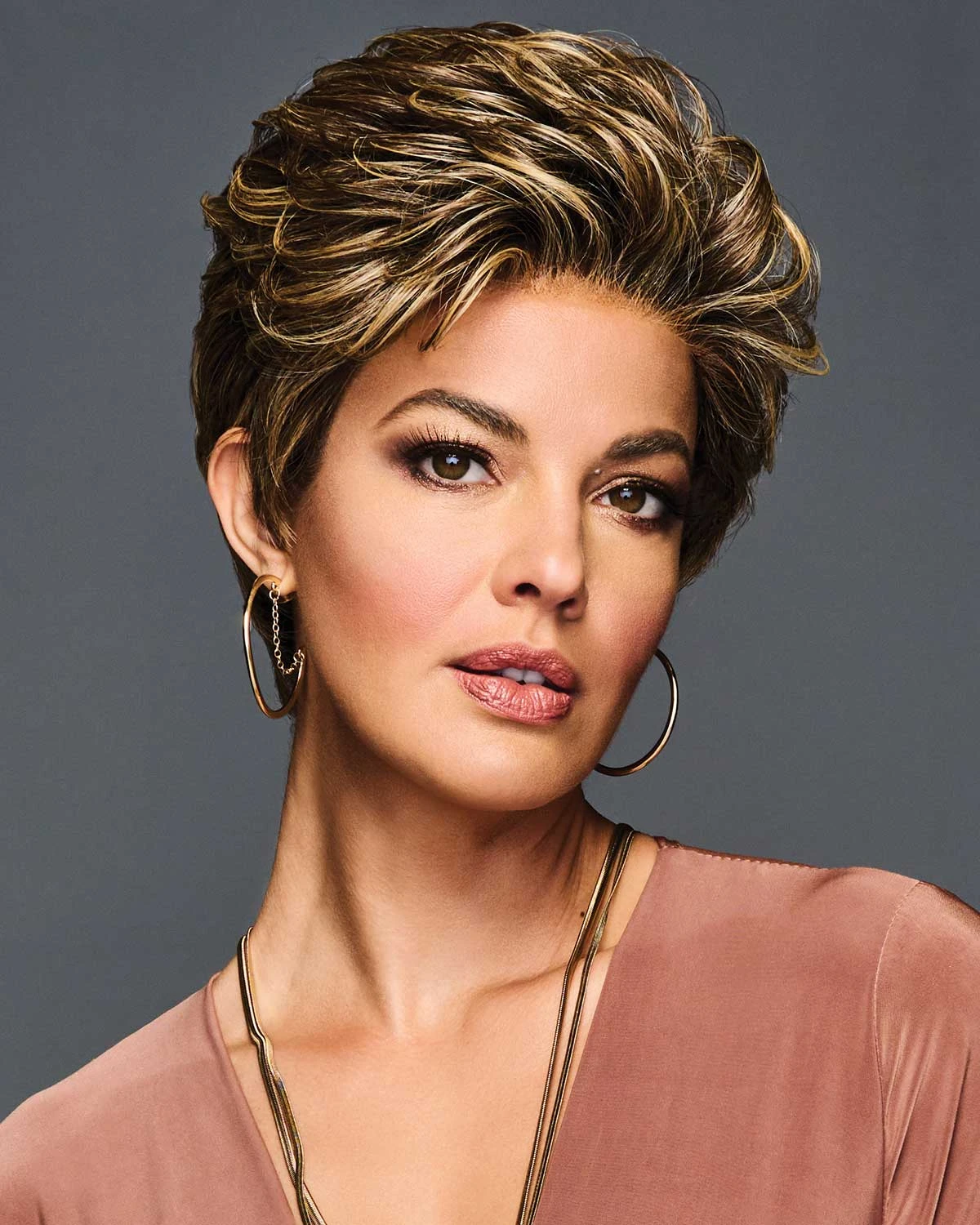 Effortless, shake-and-go style. Short and sassy with a delicate lace front that lets you wear the piecy bang forward or brushed back. Curl the heat-friendly Tru2Life hair for volume or flat iron for a sleeker look. Get Out of The Door and on with your day!