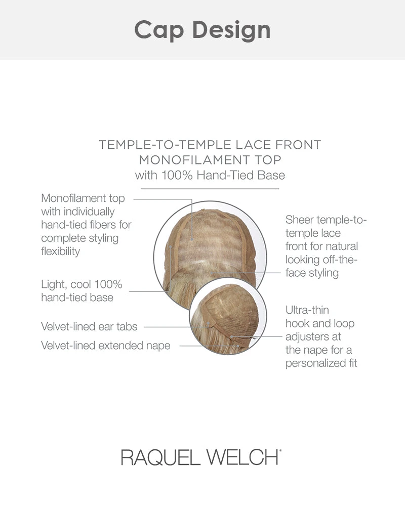 Who doesn’t love an upgrade? The oh-so popular SIMMER style now with the luxurious upgrade of a lightweight, hand-tied base. Indulge in the total freedom of hair that moves beautifully, styles beautifully, and has a remarkably natural overall appeal.