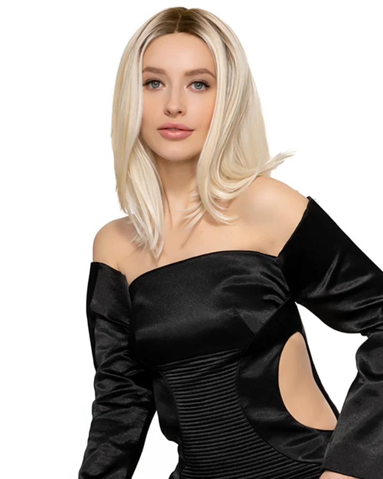 This classic long bob, also known as the “lob,” is a sophisticated, versatile, and timeless hairstyle that falls between shoulder and collarbone length. Smooth layers of low-density strand by strand Style-Able Effortless synthetic fiber is double hand-knotted into a sheer monofilament lace front cap for a natural part anywhere and undetectable hair line.